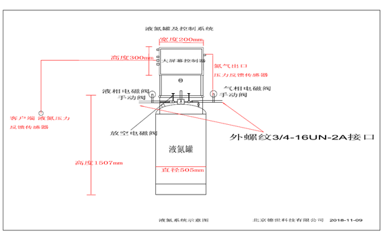 液氮罐補液控制系統(tǒng)由液氮補液罐、低溫智能化控制系統(tǒng)、閥門組件控制電磁閥和真空比例閥箱、PLC編程器、智能化控制人機交互控制終端、不間斷電源、溫度及壓力傳感器監(jiān)控探頭系統(tǒng)及反饋電路系統(tǒng)組成,功能可根據(jù)客戶需求,定制相關罐體自動增壓-出液-排氣的壓力及流量控制程序。
